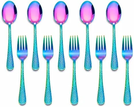 - Exquisite craft, mirror polished keeps this kid utensils shiny and smooth, without rough spots to hurt your children’s mouth, hammered handle looks like adult utensils, provide a feel of grown up and encourage toddlers to feed by themselves, easily match your tableware, easy clean and dishwasher safe