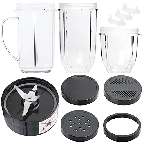 11 PCS Blender Replacement Parts Cross Blade 16OZ Replacement Cup With Handle,12OZ Short Cup With Lip Ring And Stay-Fresh Lid Replacement Cups Compatible With Magic Bullet Blender Cups MB1001 Series