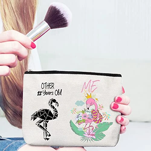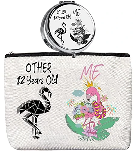- 12 Year Old Birthday Gifts for Girls: This funny 12th Bday Flamingo Bag is made with linen and waterproof material, to ensure high quality graphics will remain clear and vibrant design. And the 12th Birthday Flamingo Pocket Mirror is made of stainless steel. The 12th Birthday Cosmetic Bag and 12th Cosmetic Mirror are the best 12th Flocking Fabulous Birthday Gifts for 12 Years Old Flamingo Lovers, ideally for daily use