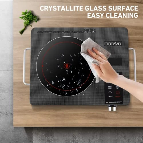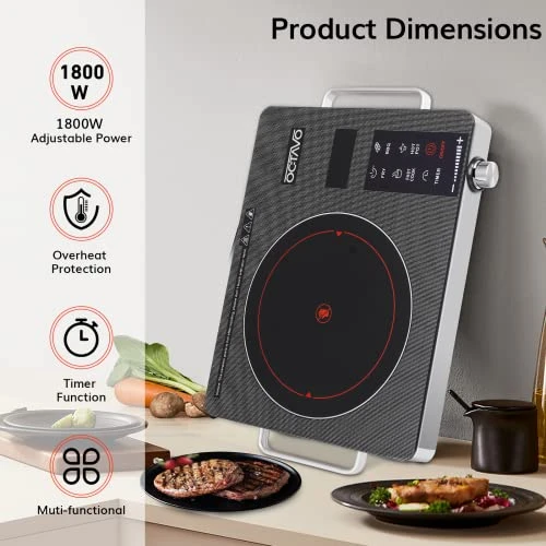 - Safety, Convenience, and Easy Cleaning – Designed with safety in mind, this countertop burner infrared features an anti-scalding portable handle, overheating protection, and a timer function ranging from 0-240 minutes. The easy-to-clean surface requires only a damp cloth once the product has cooled down. Perfect for home and outdoor cooking, this 1800 watt hot plate offers convenience and peace of mind.