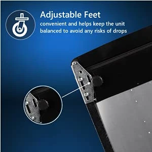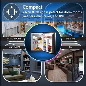 - STAINLESS:A stylish mini-fridge that adds sophistication and class ADJUSTABLE FEET:The feet conveniently adjusts based on your space, guaranteeing no risk of beveages falling over
