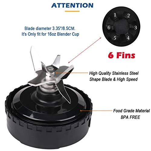 - 🍈【Package including】2 x 16oz Single Serve Cups with Lid,1 x Single Serve Blade. Only fit for 6Fins female Ninja blender base.Not fit for Ninja blender that come with18oz/24oz/32oz cups.Not a replacement for the 4″ 10cm blade.