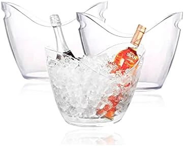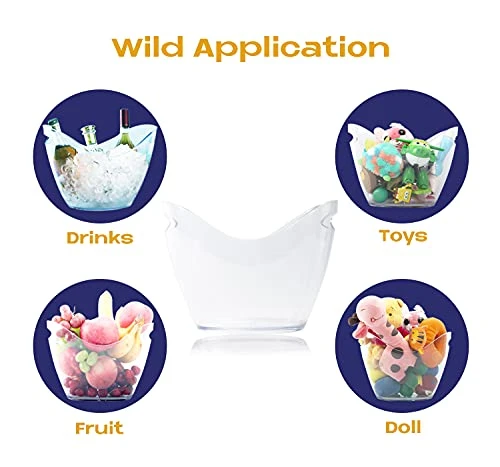 2 Pack 4L Large Capacity Beverage Tub Oval Storage Bucket,Ice Buckets For Parties Plastic Wine Bucket, Beer Bucket, Like An Ice Bucket JENIGH JEWEL, Transparent