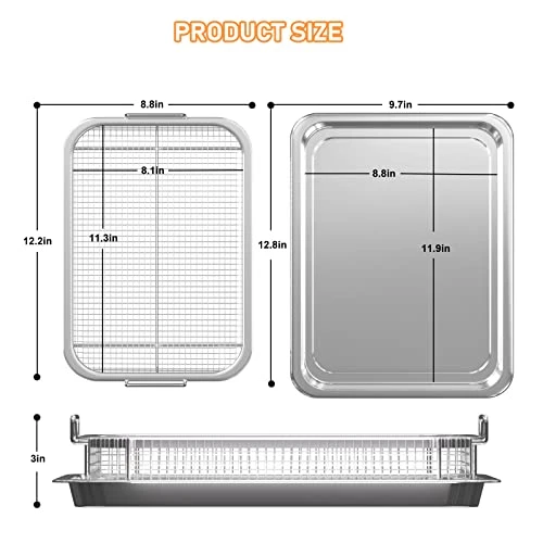 2 Piece Air Fryer Basket and Tray for Oven, Stainless Steel Crisping Basket & Tray Set, Oven crisper for French fry & frozen food