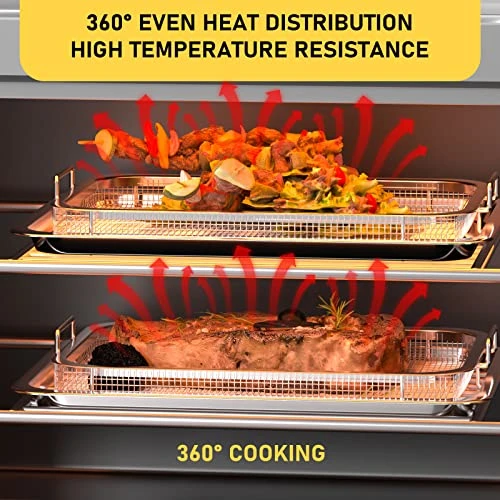 - Dishwasher Safe: Made from high-quality, durable, and non-toxic stainless steel, our oven rack is heat-resistant and dishwasher safe. You can use it as an air fryer basket for an oven with an air fry option or a simple bacon pan. Cleaning up has never been easier.