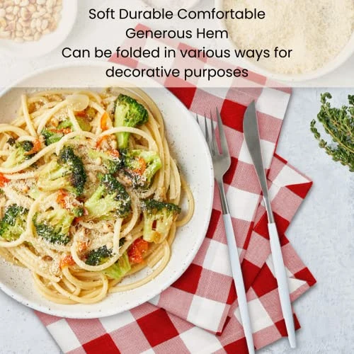 - Each set contains 12 Pack Gingham buffalo check plaid oversized dinner napkins measure 20″x20″