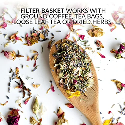- FILTER BASKET & SHOWER HEAD: The removable filter basket works with fresh ground coffee, tea bags and loose leaf teas, while the shower head is designed for complete saturation and optimal flavor extraction