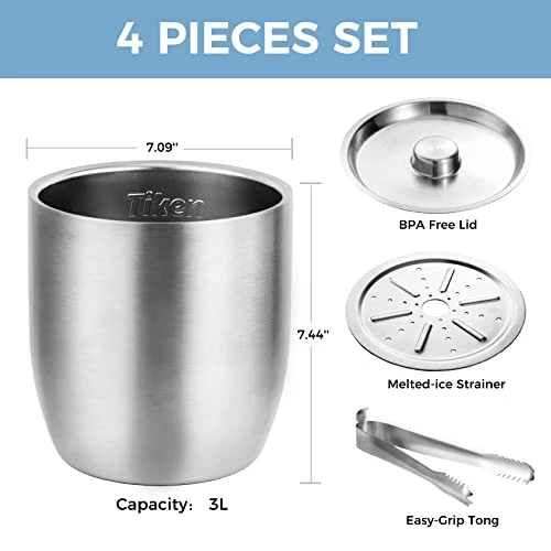 - 3 Liter Large Capacity: Large insulated ice buckets meet your versaile needs. Hold enough ice for your parties , no more topping it up form ice box all night. The ice holder can also chill a bottle of wine, bubbles, 3-4 12oz beers or cans. Sip slowly and enjoy ice cold drinks to the last drop.