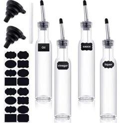 - Practical accessories: the foldable silicone funnel is convenient for you to pour liquid condiments, ingredients, oil and vinegar into the glass bottle; Waterproof stickers and markers makes it easier to distinguish different types of spices