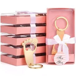 - Package contents: each kit contains 50 pieces of footprint keychains and gold bottle opener come in a present box individually wrapped, tied with a ribbon bow and [For You] tag, which are available in bright packaging; This bottle opener can be given to adult guests as baby shower favor