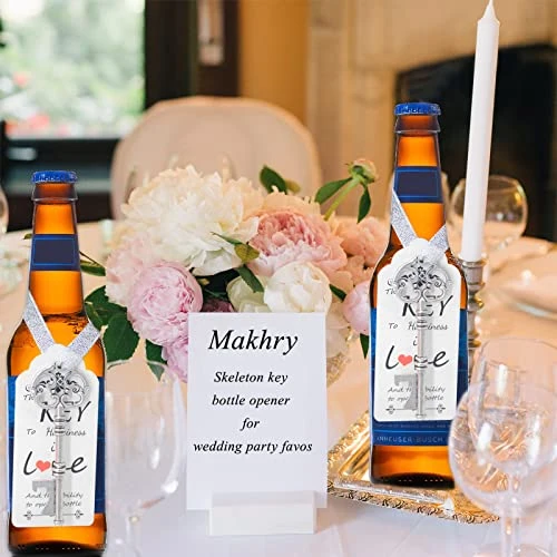 - Size: Key wedding favors bottle opener is 3.2 inch in height; gift tags is 1.5inch in width and 3.5inch in height,the total length of ribbon is 900 inch, which is long enough for assembling all keys and tags.