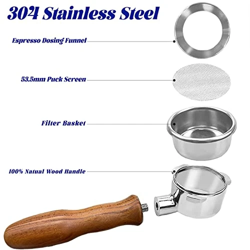 - With Dosing Funnel and Puck screen: in order to Improve the quality of Espresso Coffee, With Puck screen to prevent coffee grounds from flowing out of the extraction port, making the powder distribution more uniform and Espresso Dosing Funnel to introduce the powder into the Filter Basket, avoiding powder scattering around, reducing waste and confusion Compatible with the Filter Basket shape, easy to install, use, and clean