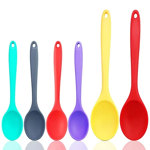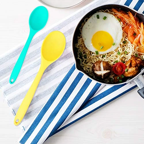 - Humanized design: These silicone mixing spoons are ergonomic design,which give you more comfortable and secure using experience, and designed with suspension hole in the end of handle,which is convenient for you to hang them on hooks,saving more kitchen space