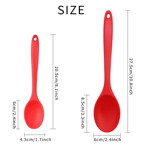 - Feature: These silicone cooking spoons are designed with smooth and non-stick surface,which is easy to clean and will not scratch or damage cookware.In additon,these silicone stirring spoons are excellent in heat-resistant,which is safe within the temperature range of -40°F – 428°F/-40 ℃ – 220 ℃
