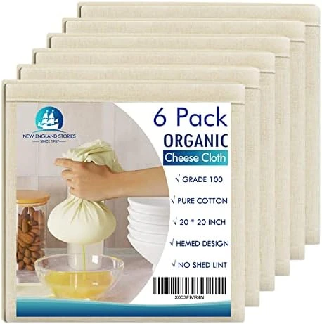 - Multi-function — Cheesecloth can be used in different household and professional applications. It could be used for making homemade cheese, Greek yogurt, butter, almond milk, nut milk, fruit juice, spice bags, canning, kombucha.