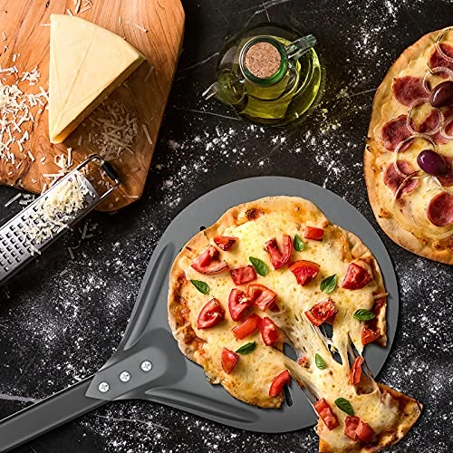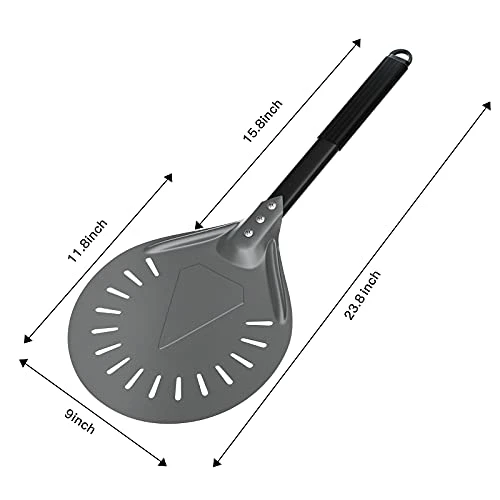 - PRACTICAL PIZZA TURNER: The pizza shovel features perforations that reduce friction and allow excess flour to fall off easily. Making the bottom of the pizza crispier and more delicious. With tapered edge, it is easy to slide under pizzas with precision every time when you are turning it.