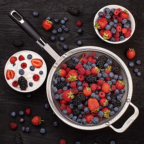 - Finest Mesh Strainer – Our strainer can sieve through even small bits of pasta, rice, and quinoa. It is reinforced with two layers of woven mesh to sift ingredients better than most colanders and sieves.