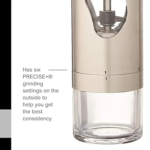 - Adjustable Coffee Grinder: This hand coffee grinder has 6 settings for fine or coarse coffee grounds