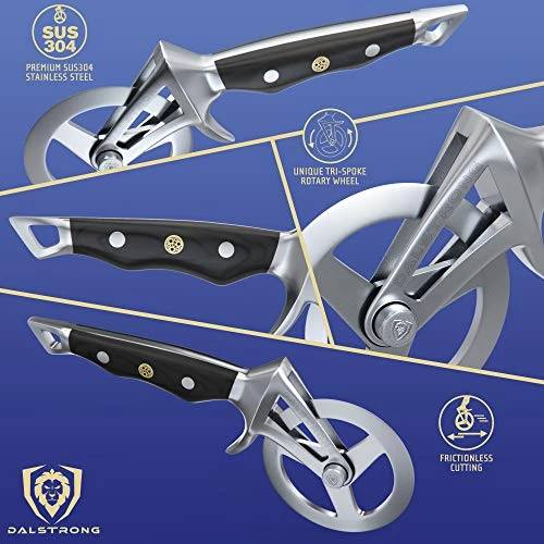 - PROFESSIONAL QUALITY: Featuring a ferociously sharp, reinforced, tri-spoke rotary wheel design, the Dalstrong Orbit Razor Pizza Wheel offers drastically reduced drag to quickly and smoothly sail through even the heartiest and freshest thick or thin pizza crusts, flakey pastries, loaded flatbreads, quesadillas, pasta dough, and more with effortless convenience