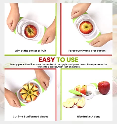 - Wedger is easy to use; it cuts the fruit into 8 uniform slices in one simple motion; can be used for most medium-sized fruits that are round in shape
