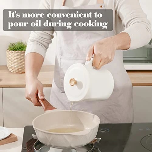 - ❤Size: 1.4L Woman’s Day Grease Holder with Strainer.With fine mesh strainer,easy to separate food pieces from cooking oil.It can filter and store used cooking oil,coconut oil, bacon grease, fat, frying oil, hot oil and so on,also can be used to store other liquid seasoning.