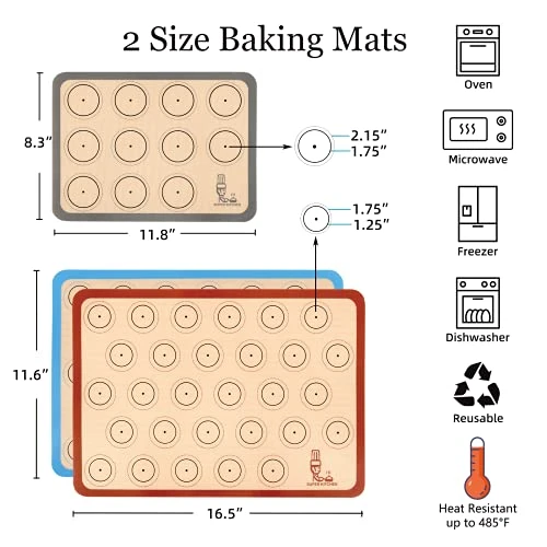 - Versatility: Oven/Microwave/Dishwasher/Freezer Safe: Macaron mat is made from highest food grade liquid silicone and can be used at temperature ranging from -40°F to 485°F (-40 to 251°C). Perfect for baking, candy/macaron/pastry/cookie/bun/bread. Also for table/placement mats.