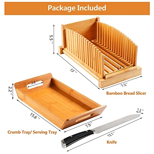 - [🍞Foldable Bread Slicer] The whole thing folds flat to fit into the crumb tray. Folded up, it stores easily on the pantry shelf, drawer and cabinet for next use. Great as a gift! Give away as a gift to family or friends, or coworkers. Perfect gift for holidays, birthdays, weddings, bridal showers, and more!