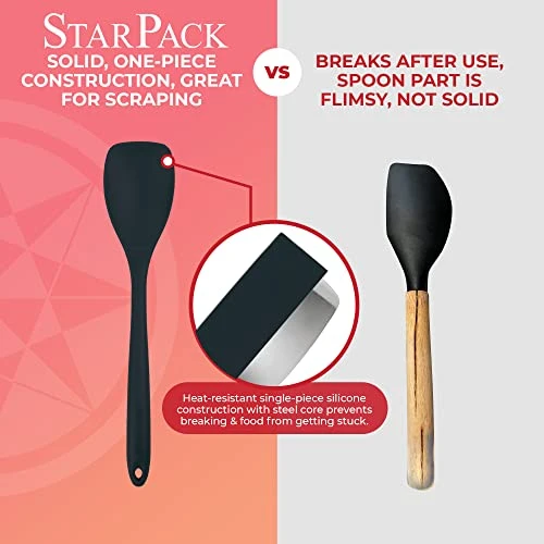 - QUALITY NON STICK SPATULA HIGH HEAT RESISTANT, NON-MELT, & NON-FLAKING – The spoonulas silicone heat resistant material won’t ever melt, nor flake into your food, thanks to quality materials & production processes!