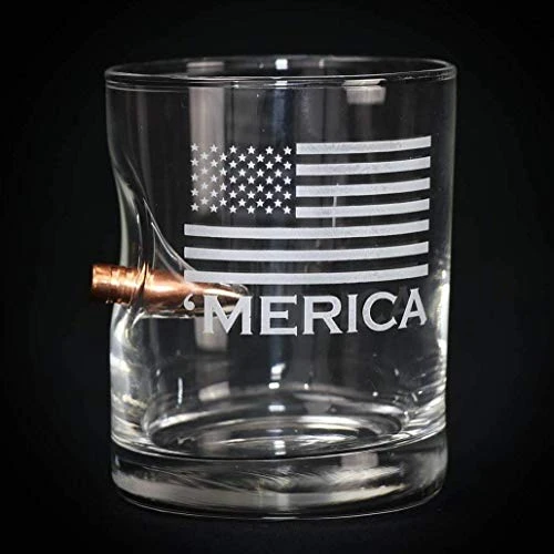 BenShot ‘Merica 11oz Rocks Glass With Real .308 Bullet | Made In The USA