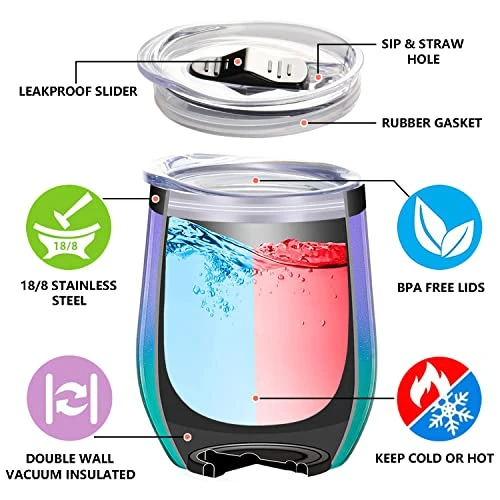 - 🎁【Double Wall Vacuum Insulation】This insulated wine tumbler has the property of double wall vacuum insulation, which can keep hot for 3 hours and keep cold for 9 hours. So our wine tumblers are the best choice for you in all seasons.