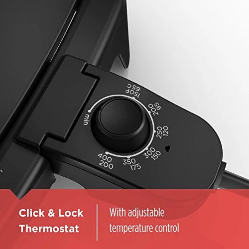 - Click & Lock Thermostat – The removable probe features an adjustable temperature knob, providing the ideal heat for every cooking task. Wattage Output: 1500 watts