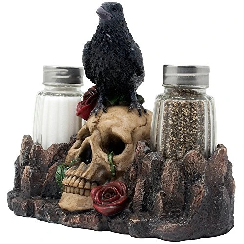 - Individually hand-crafted from cold cast resin with glass salt and pepper shakers.