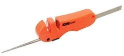 - COARSE TUNGSTEN CARBIDE SHARPENING BLADES: Featuring coarse tungsten carbide sharpening blades and fine ceramic rods, the unit also comes with a retractable diamond-tapered rod used for deep serrations.