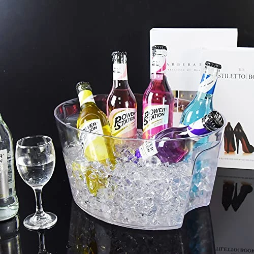 Cedilis 6 Liter Acrylic Ice Bucket, Clear Champagne Bucket Chille, Oval Wine Bucket, Drink Cooler Bucket, Beverage Storage Tub For Champagne, Beer Bottles, Drinks, Bar And Parties