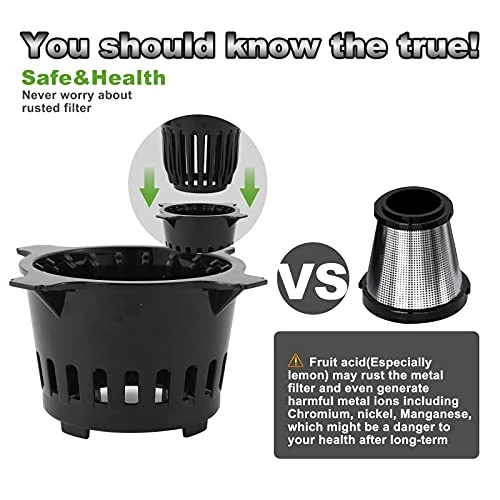 - REAL EASY TO CLEAN-The filter of this cold press juicer is a double-layer grid structure. Different from the traditional steel stainless strainer easy clogged by thousands of meshes, when you using our juicer is real easy to clean just by flushing water,even no need to use brush.