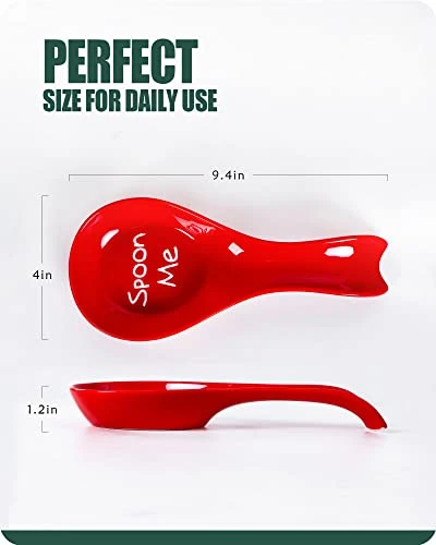 - Easy to Clean: Nearly non-stick glazed exterior easily releases stains for quick cleanup. Just throw this red spoon rest into the top rack of the dishwasher or scrub by hand simply