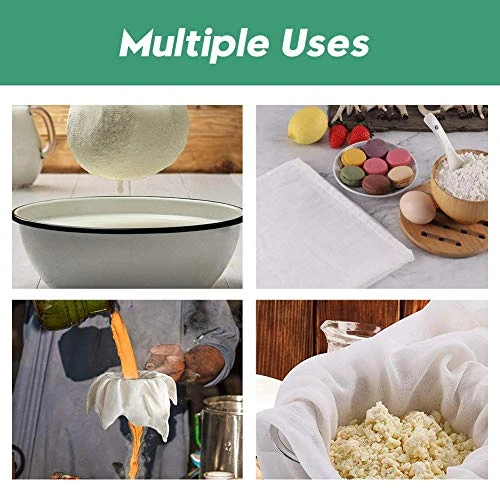 - 🧀🧀🧀Multi-function uses: cheese clothes for straining for cooking For cheese, canning, kombucha, cheese, yogurt, butter, wine, roasting turkey and chicken, Spice bags, filtering tea & coffee, dusting and cleaning.