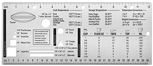 - Tool for Culinary Students: The measurement details and memory devices on this ruler,it a great tool for culinary school,If you are planning on going to culinary school get this! It is a life saver for the first couple of skills and cuts classes.