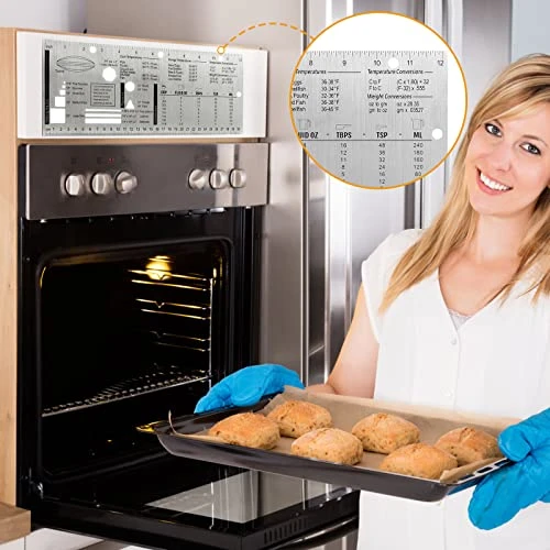 - Reference Tool for the Kitchen: More valuable information printed on the ruler,suitable a newcomer to baking and cooking at home, it is still a very useful reference item when baking,chopping veggies, etc.but the corners and edges are rather sharp.Please take care when using.