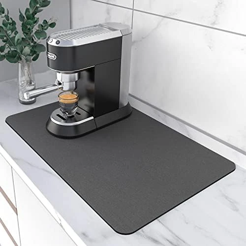Coffee Maker Mat For Countertops: Coffee Mat Absorbent Coffee Bar Mat For Kitchen Hide Stain Rubber Backed, 12″ X 17″ Coffee Bar Accessories Fit Under Coffee Machine Coffee Pot Appliance Mats (Grey)
