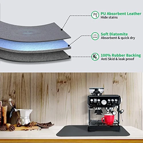 - ☕【Hiding stains & easy to clean】Unlike traditional cloth or other coffee maker mat, the surface of special PU material is anti-contamination, which can well hide stains such as water, coffee and milk, say goodbye to messy and stained countertops. You can keep it clean by simply wiping or rinsing.