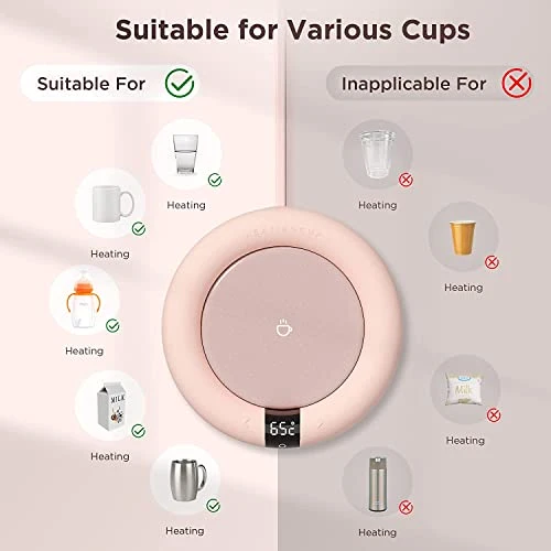 - ③【For Suitable Mug】a thin-walled, flat-bottomed mug will have better warmth performance. Fit for different material cups, ceramic, glass, mug, stainless steel cups, as well as milk cartons. (Please don’t use double-layer insulation cups ).