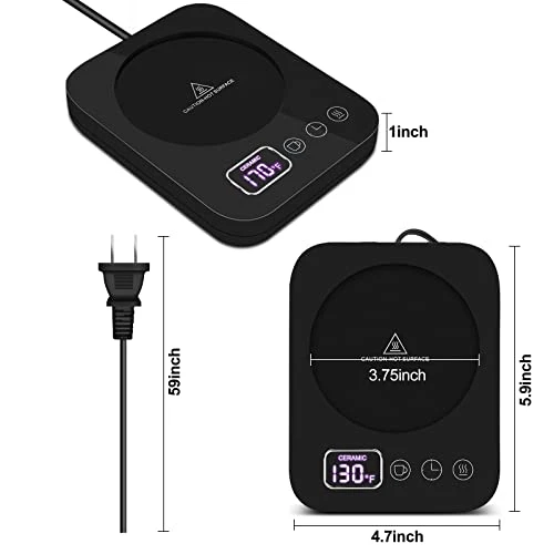 - 【Safe & Durable】The cup warmer are made of heat-resistant material, so you don’t have to worry about burning your hands and damaging the table. The waterproof and heat-resistant material for more durability, strength, and easy cleaning. What’s more, the coffee warmer is safe as it is FCC and UL certified, eliminating the chances of accidents.