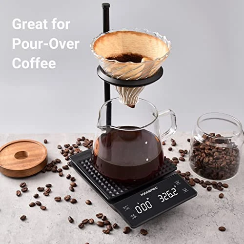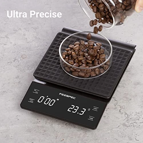 - Precise Measurements and Quick Weighing Response Times – This digital coffee scale can show you the measurements in almost real-time and precisely measure weight to 0.1 gram. It’s ideal for espresso and v60 pour over coffee.