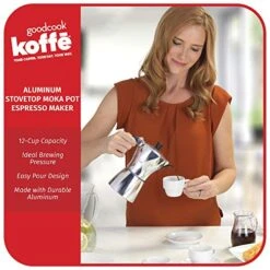Koffe 12-Cup Aluminum Stovetop Moka Pot Espresso Maker, Silver