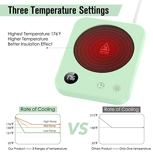 - Mug Warmer for Desk with Digital Display: The temperature and timing you have selected will be displayed on the digital display. Don’t worry about having to set it up from scratch caused by forgetting your choices. Please note that the cup warmer does not display real-time temperature and time.