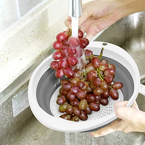 - 🍈 Multi Use and Space Saving – You can used in or over a sink and freestanding on a counter or table.The expandable body design can collapses from 4.72 inches to 1.69 inches high in just one push, making it very convenient to store in any kitchen drawer, cabinet or drying tray without taking up too much space.