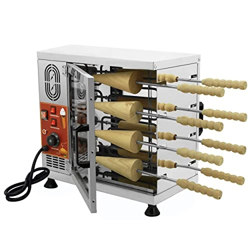 - @【16pcs Baking Tools】~ This Electric Ice Cream Cone will come with 16pcs baking tools with two different shapes. Baking 8pcs chimney cake at one time (with front 4pcs and back 4pcs), 8 baking seats for each machine.