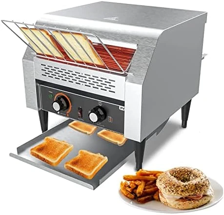 - 【7 Speed Options-Wide Usage】-The professional commercial toasters have 7-speed options and the knobs control the heating, meeting your different baking demands by adjusting speeds to control the color of bread and mode select to heating diverse foods. Adjustable belt speed to control the color of bread, 7 bread colors to select. You can use the conveyor toaster for bread, bun, bagel, donuts, bread, etc.
