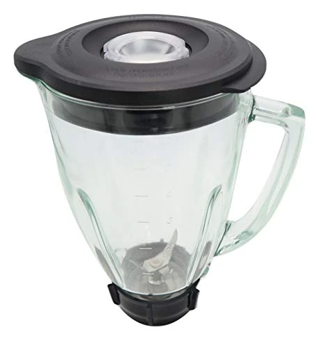- GREAT VALUE: This package set includes one extra large 48 ounce (6-Cup) round glass jar with handle, jar base locking cap, a four point stainless steel ice crushing blade, a gasket, a round lid, and a center refill cap for filling and measuring. The replacement glass jar has standard and metric measurements on it for precise blending everytime.